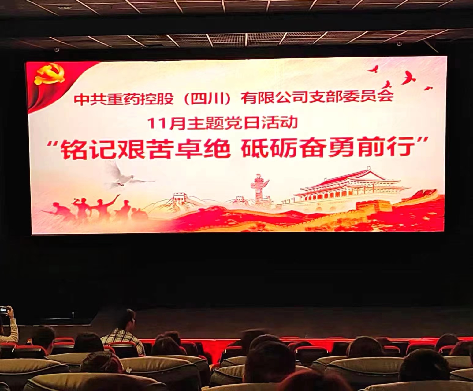 党建引领聚合力,携手共建促发展。11月28日,重控四川联合党支部、重药四川金利联合党支部与重药四川新特药党支部联合开展“铭记艰苦卓绝 砥砺奋勇前行”主题党日活动,抓实抓牢党员教育,组织各公司党员干部等70余人观看红色电影《火凤重天》,积极搭建党组织横向交流平台。