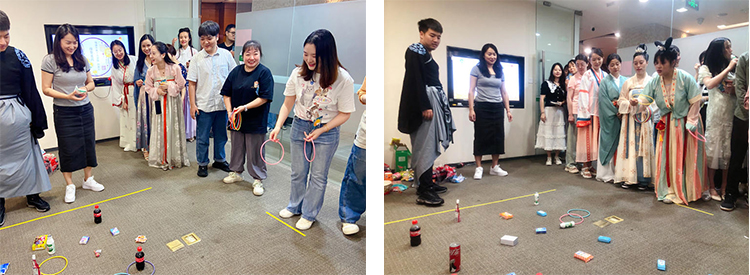 此次中秋游园活动一共设有六个环节。 首先,参与者需要背诵一首含“月”古诗或者唱一首含“月”歌曲,拿下“敲门砖”环节,获得一张游戏集章卡。凭集章卡依次参加“中秋团圆”、“全情投入”、“触底反弹”、“一鼓作气”、“命中靶心”五个项目,通关后获得相应的印章。
