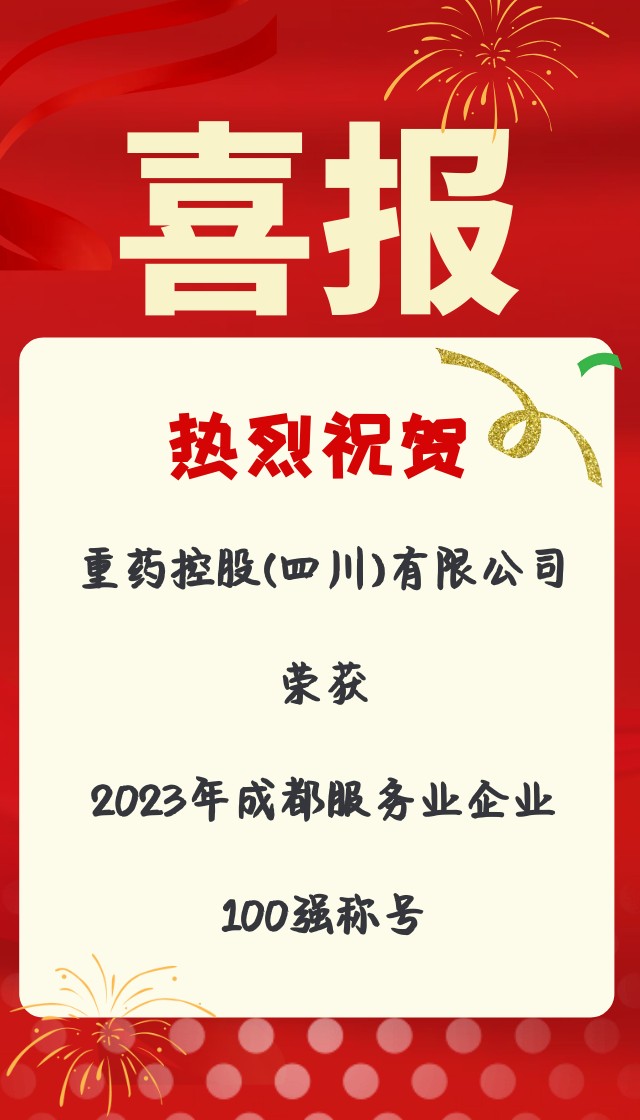 喜报丨重药控股(四川)有限公司荣获2023年成都服务业企业100强称号