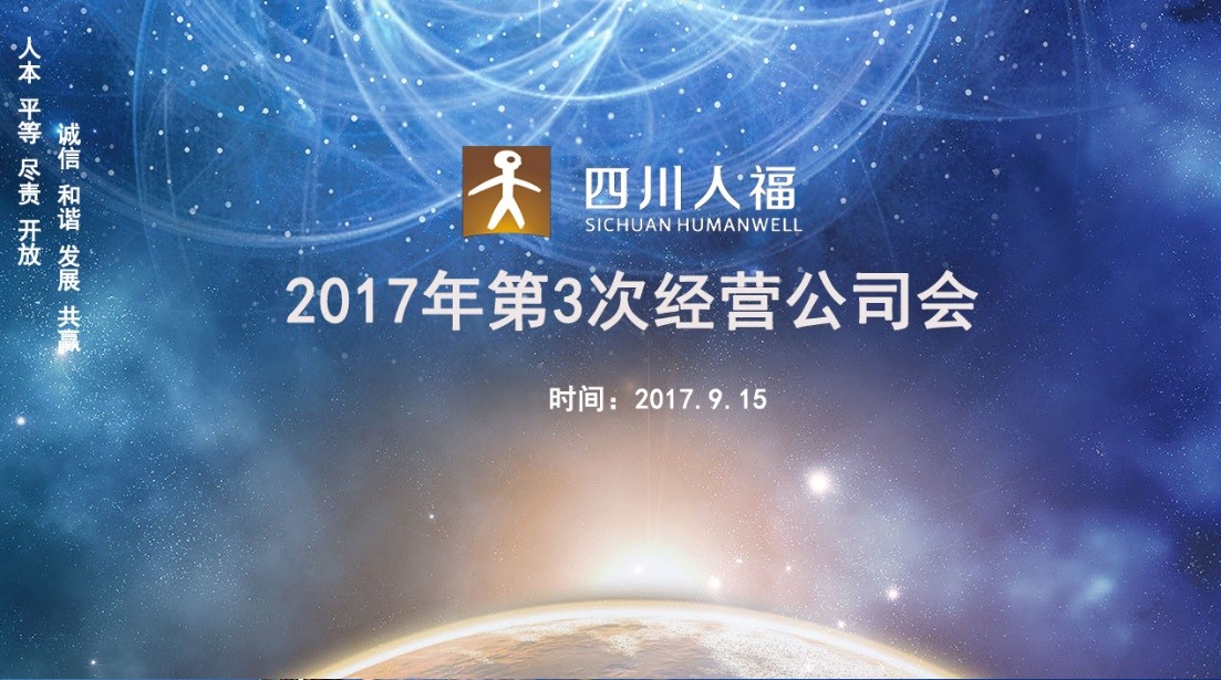 2017年9月15日,四川人福2017年第三次经营公司工作会在成都新东方千禧大酒店召开。四川人福经营管理团队、各事业部总经理、各子公司第一负责人参加了会议。